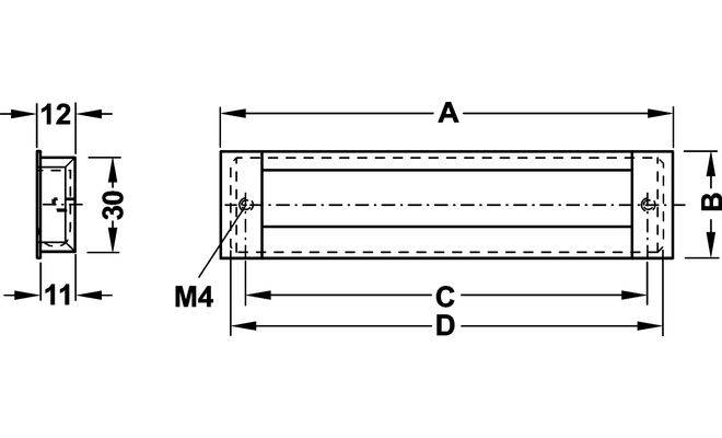 Опис Ручка мебелва врізна 34 х 143 мм цамак срібна 15501131