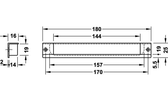 Технічні характеристики Ручка меблева врізна цамак 25 х 180 мм срібна 10868914