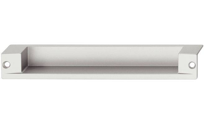 Ручка врізна довжиною 180 мм, матеріал — цамак, кольору алюмінію з матовою поверхнею. Може застосовуватись для меблів з деревини. Завдяки своєму кольору і матеріалу, Ручка чудово підходить до багатьох меблевих виробів.
