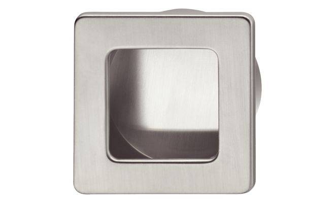 Меблева врізна ручка квадратної форми для дерев'яних дверей. Виготовлена з цинкового сплаву цамак, нікельована. Ручка кріпиться без гвинтів за допомогою клеєвих канавок.