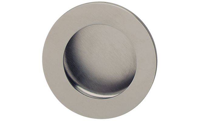 Меблева врізна ручка круглої форми для дерев'яних дверей. Виготовлена з нержавіючої сталі, класу якості 1.4301, з матовою поверхнею.