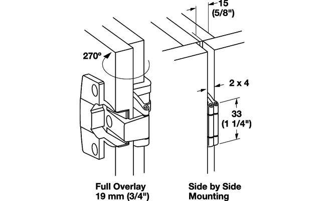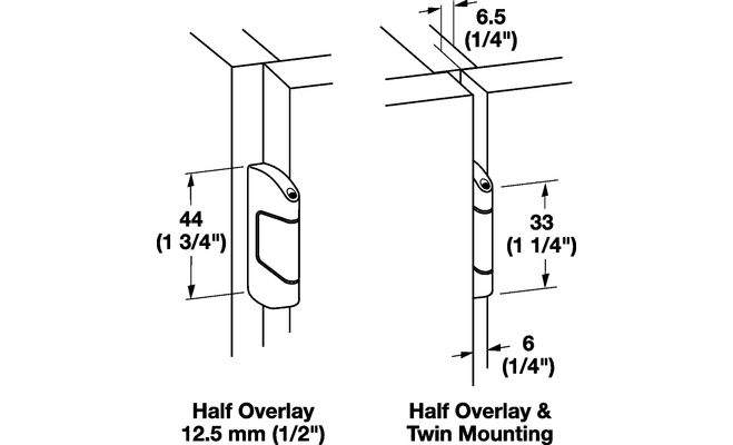 Завіса з видимим роликом, виготовлена зі сплаву цамак. Поверхня нікельована. Має подвійне кріплення.
