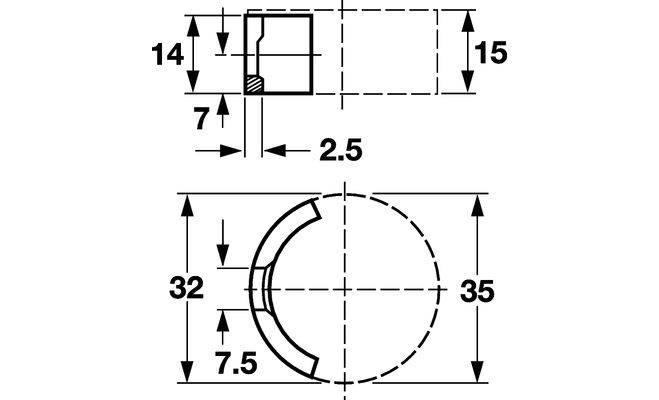 Технічні характеристики Сегмент що впирається для стяжки D 35 мм, сталь жовта хромована