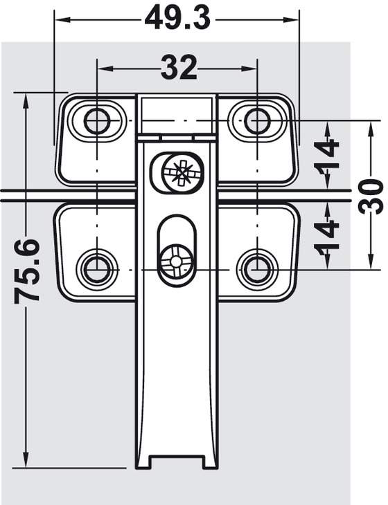 Опис Середня завіса цамак нікельований без направляючого штифта під шуруп для ДСП з регулюванням 37264796