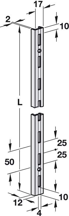 Технічні характеристики Шина настінна сталь порошкове покриття біле 17 x 12 x 845 мм 77203608