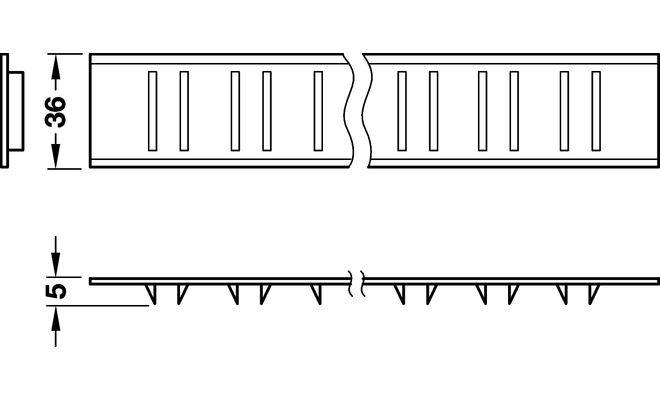 Опис Шина утримуюча для торцевої установки шпунтованої рейки, 498 мм пластмаса сіра 70027520