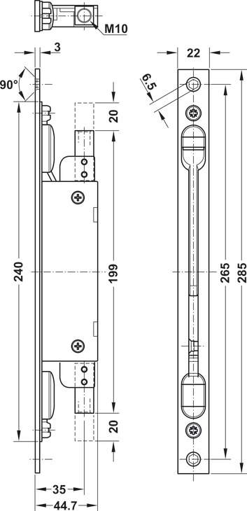Шпінгалет для дверей врізний 22 x 285 мм матовий нержавіюча сталь 91162255