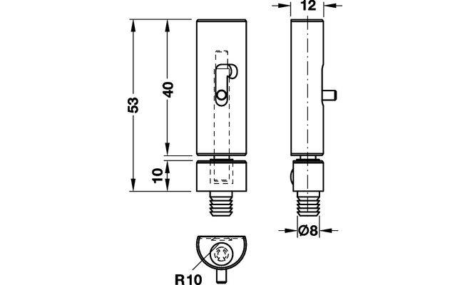 Шпінгалет для скляних/дерев'яних конструкцій 53х13 25280011
