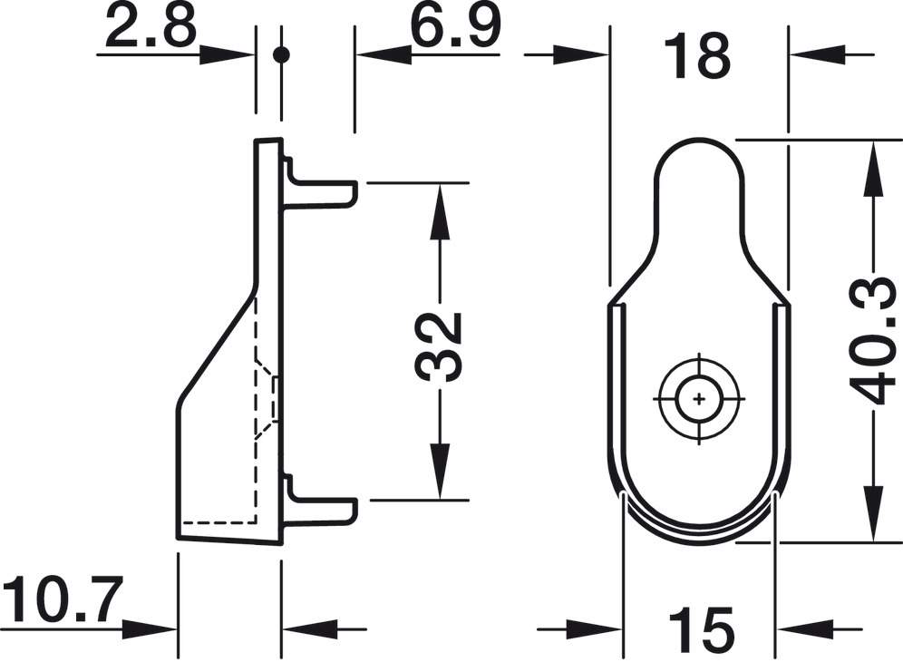 Опис Штанготримач OVA для бокової стінки цамак нікельований 1 отвір 2 штифта 80333726
