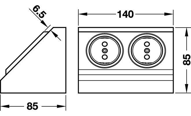 Кутова скошена штепсельна розетка призначена для встановлення в кутку. Але можливі й інші варіанти розміщення.