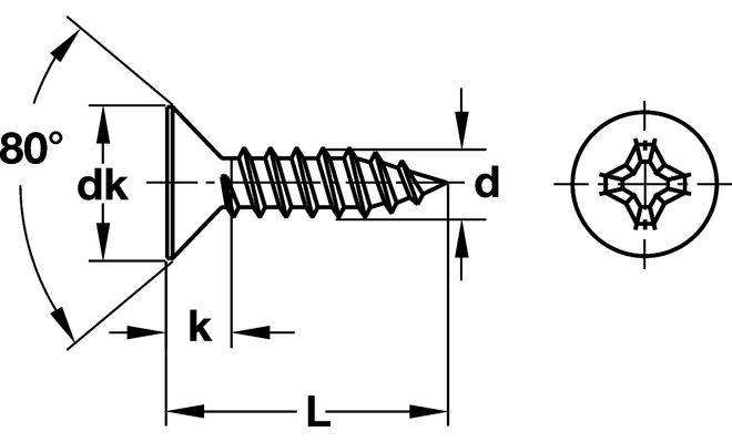 Шуруп з потайною головкою, з повною різьбою, виготовлений з оцинкованої сталі. Параметри шурупа (мм): діаметр різьби/довжина/діаметр головки/висота головки/привід - 3,5/9,5/7,5/2,3/ хрестовий шліц PH2.