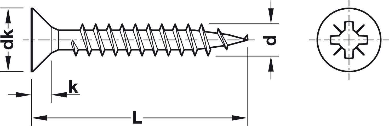 Оцинкована поверхня шурупа 015.31.643 захищає від корозії, а діаметр 3,5 мм дозволяє працювати без попереднього свердління у плитах товщиною від 16 мм.