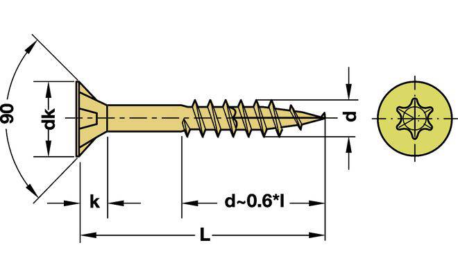 Технічні характеристики Шуруп SPAX CS TS сталь жовтий хромований 4.5x50 мм (упаковка 500 шт) 01851456