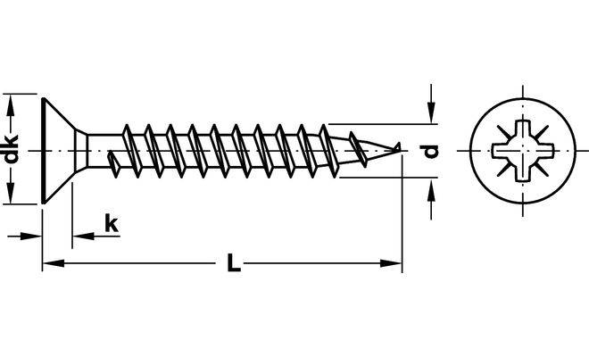 Шуруп Hospa для ДСП з повною різьбою і потайною голівкою, виготовлений з нікельованої сталі. Параметри шурупа (мм): привід / діаметр різьби/довжина/діаметр голівки/висота голівки -хрестовий шліц PZ2/4,0/17/8,0/2,4 мм. Шурупи постачаються в упаковці Orga Box у кількості 1000 шт.
