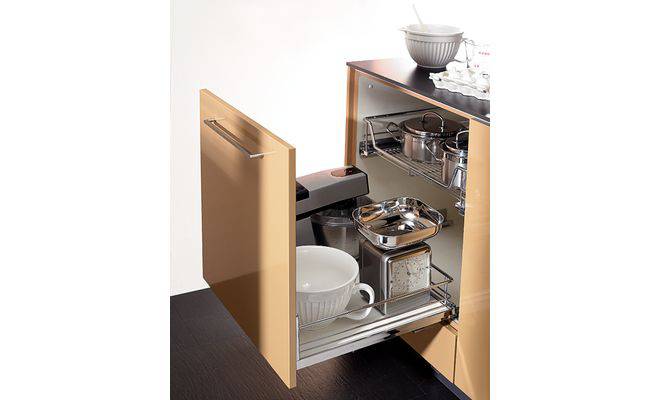 Фронтальний механізм повного висуву шафи Blum Tandem з вмонтованим амортизатором Blumotion, з направляючими на підшипниках кочення, для корпусу шириною 400 мм, призначений для монтажу за лицевими панелями та оснащений решітчатою висувною полицею. Корзина виготовлена з хромованої сталі, направляючі виготовлені з оцинкованої сталі. Несуча здатність висувного механізму 30 кг, глибина встановлення 505 мм, розмір корзини: ширина 345 мм, глибина 503 мм, висота 140 мм. Монтаж виконується шляхом кріплення гвинтами до бокових стінок та лицевої панелі.