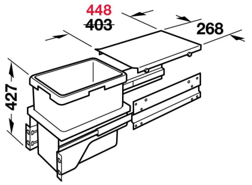 Підвісний контейнер для сміття, що прикріплюється до бічної панелі. Утримувач контейнера, системна кришка та напрямні повного висуву: