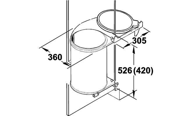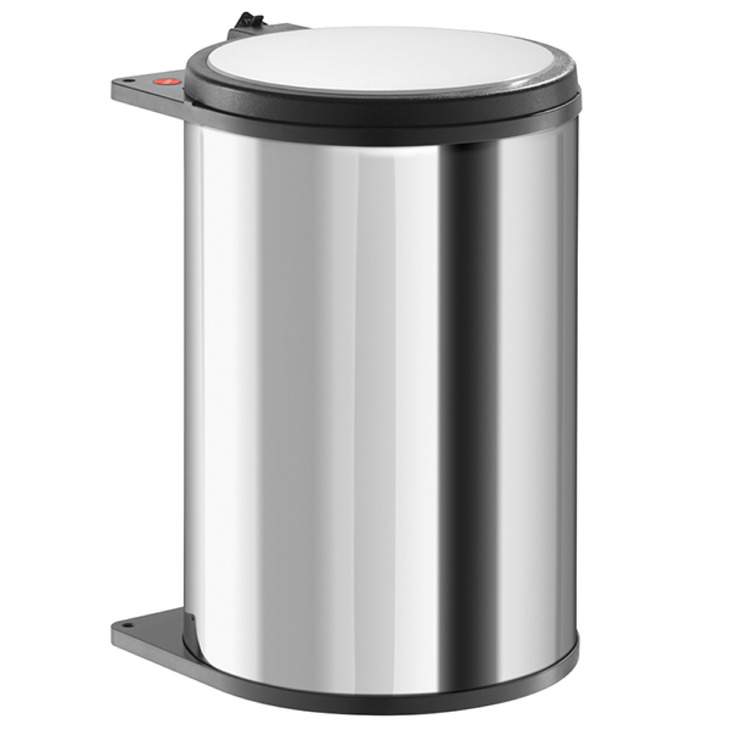 Cміттєвий контейнер ємністю 20 л, оцинковане відро вогнетривке, призначений для корпусу шириною від 400 мм, для монтажу за поворотними дверима. Контейнер виготовлений з нержавіючої сталі , змінне відро виготовлене з оцинкованої сталі, кришка виготовлена з пластмаси сіро-коричневого кольору. Монтаж виконується шляхом пригвинчування до бокової стінки шафи, для кріплення зліва та з права.
