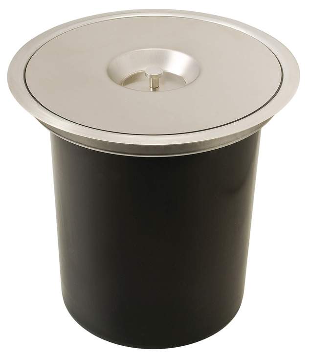 Cміттєвий контейнер ємністю 13 л, для встановлення на робочій панелі. Контейнер виготовлений з пластмаси чорного кольору з кільцем з нержавіючої сталі , кільцем з м'ягкої резини та кришкою виготовленою з нержавіючої сталі . Висота сміттєвого контейнера 350 мм.