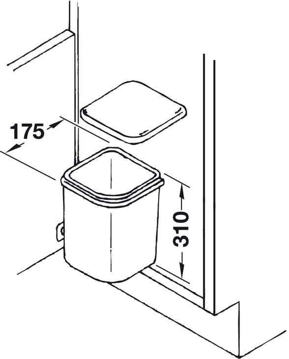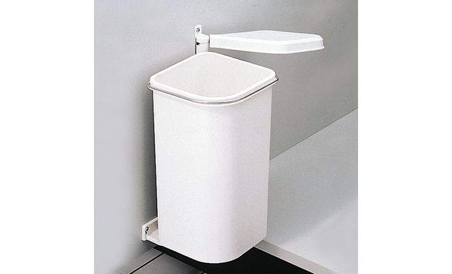 Сміттєзбірник ємністю 5 л, для монтажу за поворотними дверима, призначений для ширини корпуса від 300 мм, для внутрішньої глибини корпусу від 192 мм. Контейнер виготовлений з пластмаси білого кольору. Монтаж виконується шляхом пригвинчування до бокової стінки шафи, для кріплення зліва та з права.
