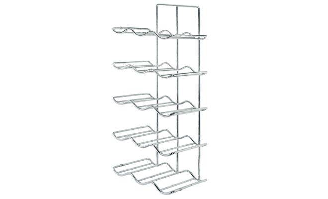 Стелаж для 12 пляшок поділений на 4 поверхи, виготовлений з хромованої сталі. Висота стелажу 490 мм,ширина 260 мм, глибина 185 мм. Монтаж стелажу для пляшок виконується шляхом кріплення гвинтами до стіни.