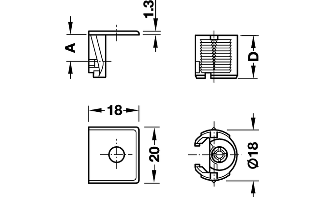 Технічні характеристики Стяжка для полиць Tab18 V 32 нікельований (упаковка 100 шт) 26366601