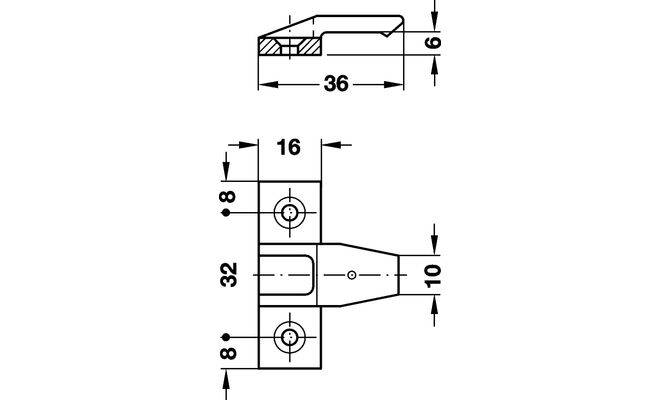 Даний елемент використовується для кріплення панелей до рамних або несучих конструкцій за допомогою шурупів для ДСП з потайною головкою. Оснащений спеціальною фіксуючою лапкою (Rastnase), яка забезпечує додаткову стабільність монтажу.