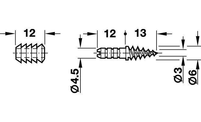 Стяжка для ручки-кнопки, для нероз'ємних з'єднань, для глибини свердління 12,5/13,5 мм. Гвинт без голівки виготовлений з оцинкованої сталі, муфта виготовлена з поліаміду коричневого кольору. Монтаж виконується шляхом запресовування в отвір Ø 8 мм. Об'єм постачання : 100 шт(1 муфта; 1 гвинт без голівки; 1 центруючий штифт на 10 муфт).