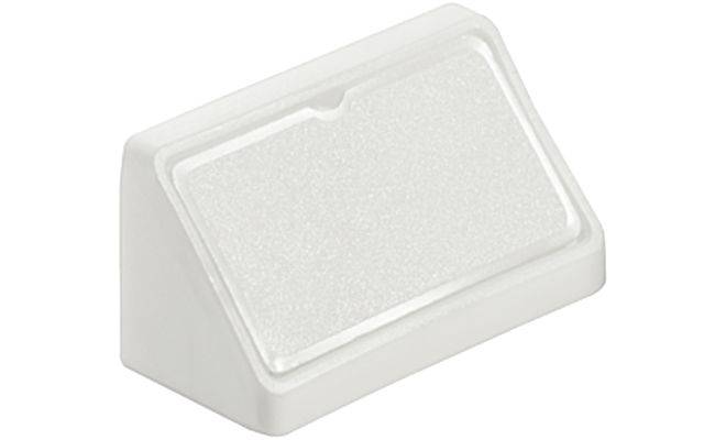 Кутова стяжка з заглушкою, для невеликих корпусів при малих навантаженнях, виготовлена з пластмаси білого кольору. Монтаж стяжки виконується шляхом пригвинчування, ширина кутової стяжки- 44 мм.