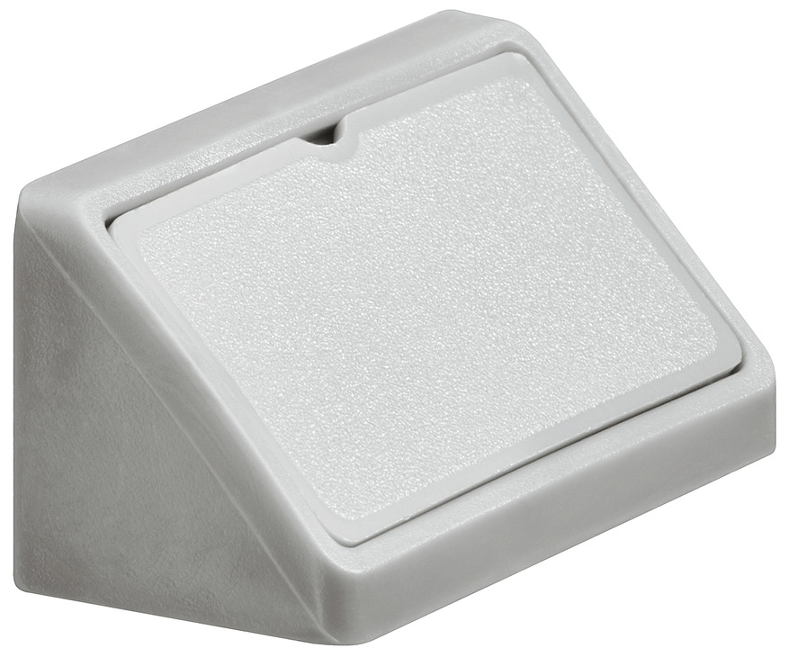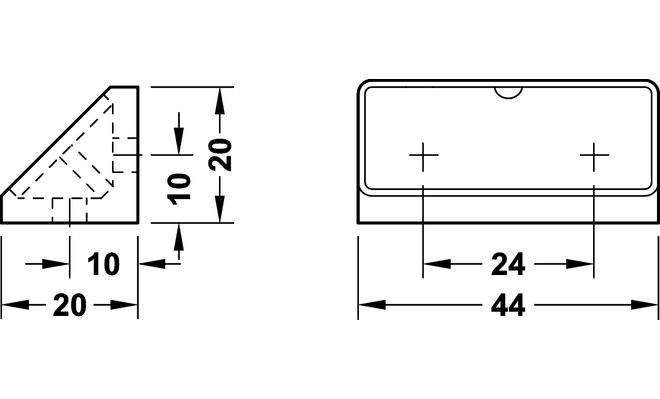 Кутова стяжка з заглушкою, для невеликих корпусів при малих навантаженнях, виготовлена з пластмаси світло-сірого кольору. Монтаж стяжки виконується шляхом пригвинчування, ширина кутової стяжки- 44 мм.
