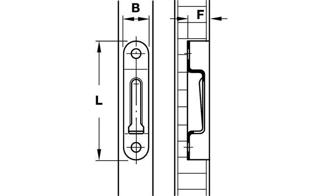 З'єднуюча фурнітура Modular для для швидкороз'ємних з'єднань в якості кінцевого упору, виготовлена з воронованої сталі. Фрурнітура Modular застосовується для товщини деталі від 16 мм, довжина стяжки- 63мм, ширина- 12 мм, глибина фрезерування 8,3±0,05 мм.