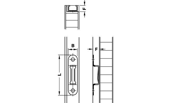 З'єднуюча фурнітура Modular для проштовхування, для секційних полиць, виготовлена з воронованої сталі. Фрурнітура Modular застосовується для товщини деталі від 17 мм, довжина стяжки- 58мм, ширина- 13 мм, глибина фрезерування- 11,3±0,05 мм.