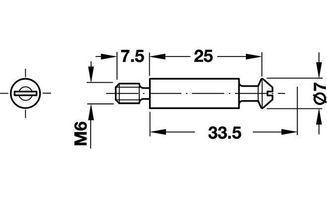 З'єднуючий гвинт RondoRfix з різьбою М6, для прямого встановлення в отвір Ø8 мм або для запресовування в отвір Ø10мм при використанні дюбеля. З'єднуючий гвинт виготовлений зі сталі. Розмір свердління 33,5 мм.