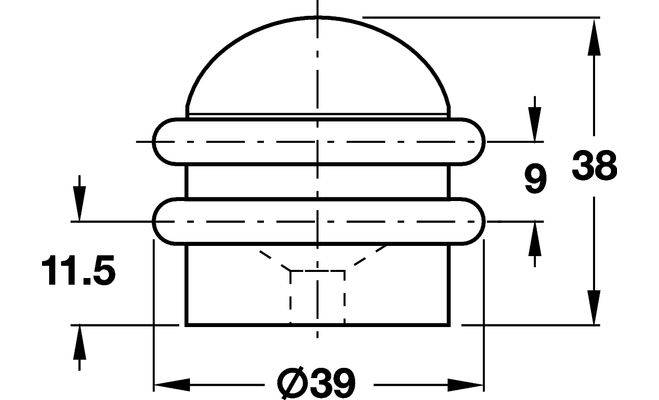 Технічні характеристики Стопор дверний для підлоги латунь полірована 38 х 39 мм