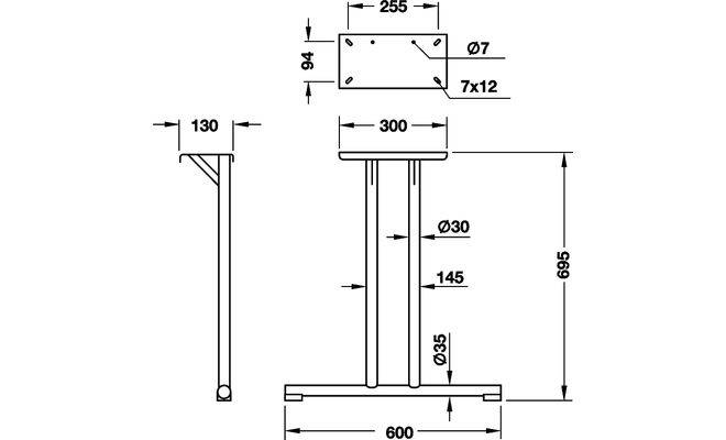 Технічні характеристики Т-подібна ніжка столу, 695х600 мм хромований (упаковка 2 шт) 63551270