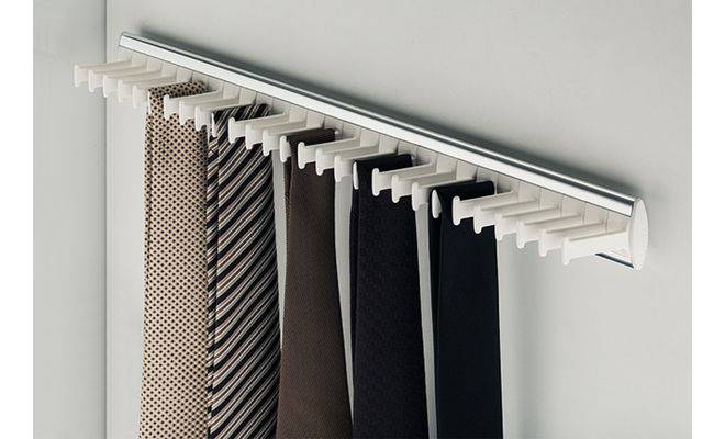 Стаціонарний тримач для краваток Hafele — зручне та компактне рішення для організованого зберігання до 28 краваток. Виготовлений з якісного алюмінію та пластику, він ідеально підходить для встановлення в шафі або гардеробній.