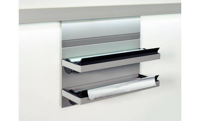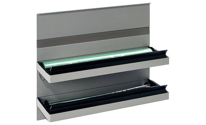 Тримач для фольги і плівки, матеріал: сталь, колір: титановий сірий, для рулонів шириною до 330 мм, розмір: ширина 350 мм, глибина 110 мм, висота 300 мм, для установки шляхом навішування знизу.