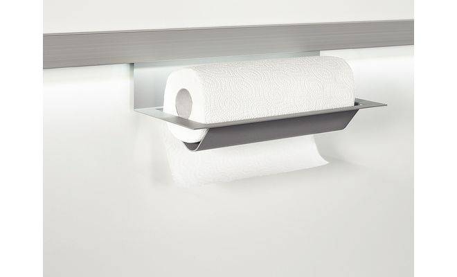 Кухонний тримач для рулонів, матеріал: сталь, колір: титановий сірий, для кухонних рулонів шириною до 295 мм, розмір: ширина 350 мм, глибина 155 мм, висота 120 мм, для установки шляхом навішування знизу.