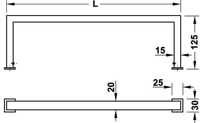 Технічні характеристики Тримач для рушників сталь хромований квадратна l=400 мм 58035001