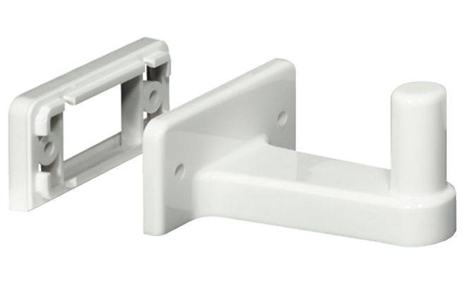 Тримач для поворотної полиці на пів кола, з проміжною пластиною, матеріал: пластмаса, колір: білий, для монтажу на гвинтах за дверима.