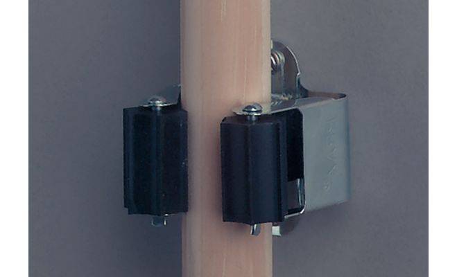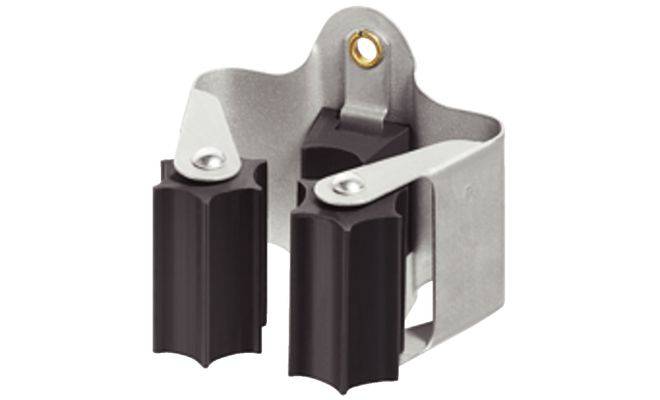 Одинарний тримач для інвентаря з ручками товщиною 23-28 мм. Тримач виготовлений з оцинкованої, полірованої сталі з нержавіючим покриттям Delta-Seal (гарантія 10 років), ролики: резина . Розміри: ширина 51 мм, довжина 40 мм, висота 50 мм, товщина пружинної сталі 0,5 мм. Монтаж тримача виконується шляхом пригвинчування.