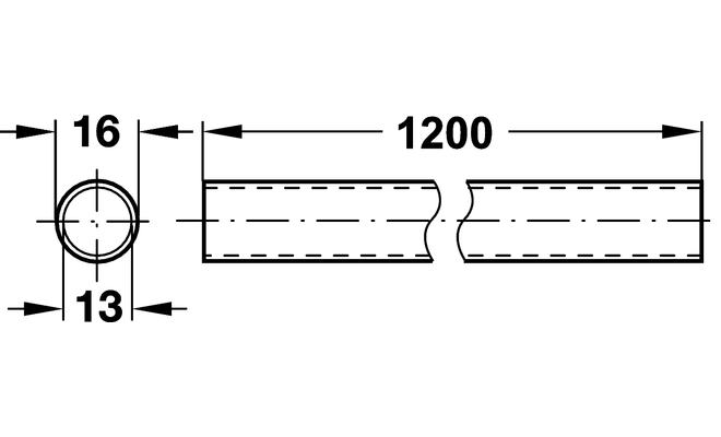 Труба огорожі Linero , виготовлена з хромованої сталі з полірованою поверхнею. Зовнішній діаметр труби 16 мм, внутрішній діаметр 13 мм, довжина 1200 мм.
