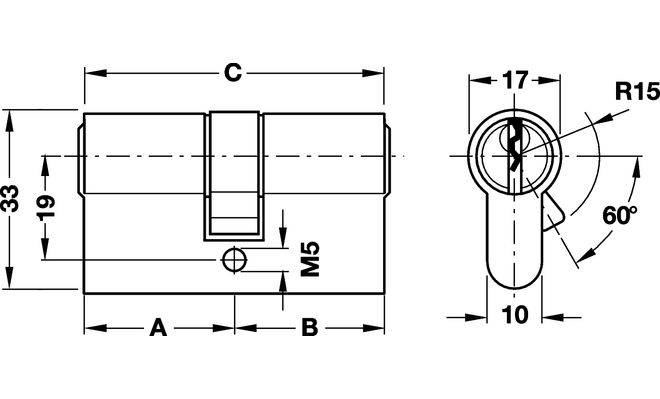 Технічні характеристики Циліндр двосторонній нікельований 33x33x66мм різне закриття 91691040