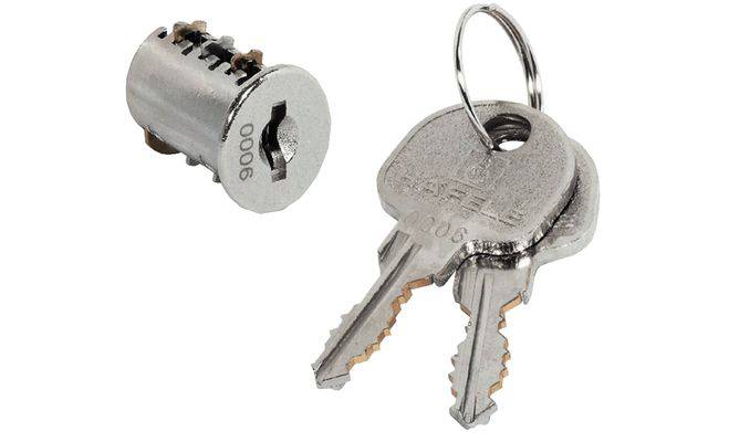 Сфера застосування: для всіх замків системи Symo. Матеріал: корпус: цамак, пластинчасті фіксатори: латунь. Поверхня: нікельована, матова. Техніка замикання: з 6 пластинчастими фіксаторами. Комбінація: можливі 3000 різних комбінацій. Монтаж: зліва чи справа, шляхом вставляння. Обсяг поставки 1 змінний сердечник пластинчастого циліндра, 2 ключі. Комбінація з однаковим замиканням.