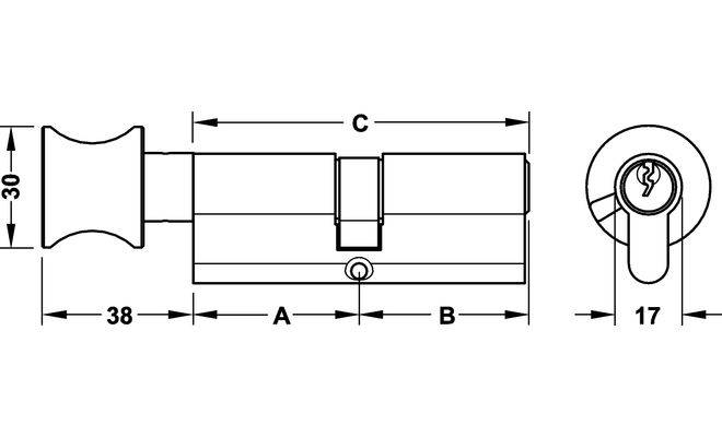 Технічні характеристики Циліндр з закруткою латунь нікельований матовий 35,5 х 35,5 х 71 мм 91691180