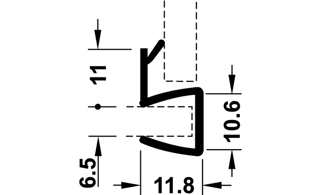 Технічні характеристики Ущільнювач кутовий для скляних дверей 90° 8 - 10 мм 2170 мм 95006620