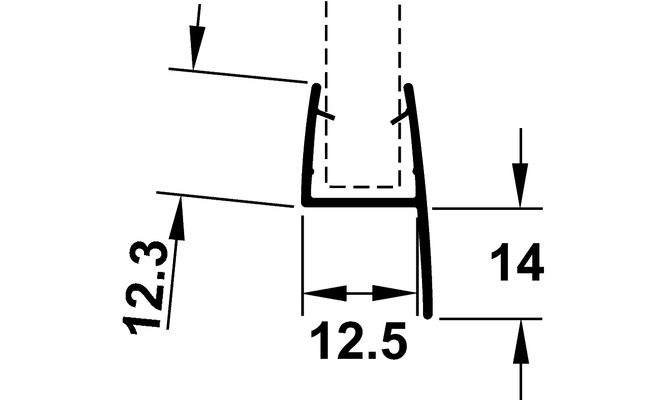 Технічні характеристики Ущільнювач PVC для скляних дверей до стіни прозорий для товщини скла 8 - 10 мм 2170 м 95006650