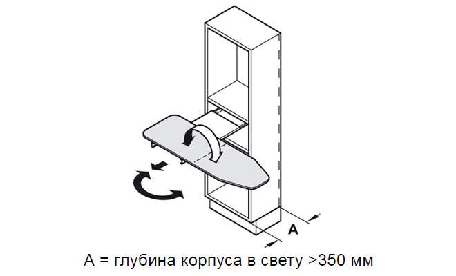 Прасувальна дошка для вбудовування характеризується наступними особливостями:
