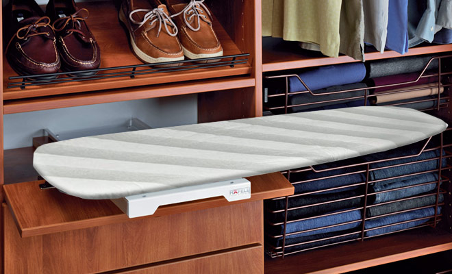 Прасувальна дошка Ironfix прекрасно підійде не тільки для шафи-купе, що стоїть в передпокої, але і відмінно впишеться в гардероб в спальні.