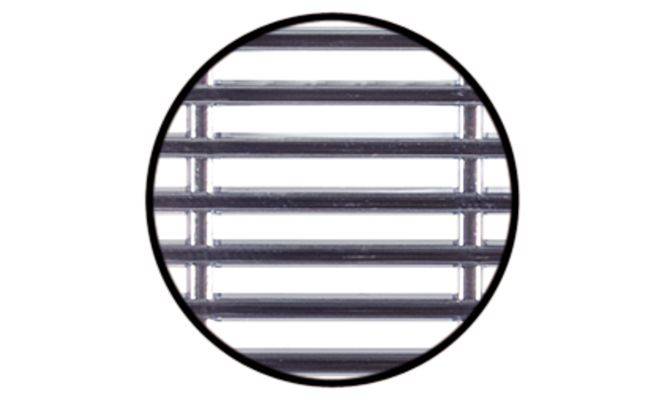 Вентиляційна решітка прямокутної форми з прорізами та захисною кромкою, виготовлена з пластмаси з хромованою, полірованою поверхнею. Ширина решітки з кромкою 68 мм, ширина решітки без кромки 61 мм, довжина з кромкою 230мм, довжина без кромки 220 мм, товщина 8 мм, товщина кромки 2 мм, площа проходу 42,2 см². Монтаж вентиляційної решітки виконується шляхом врізання, кріплення за допомогою цвяхів.