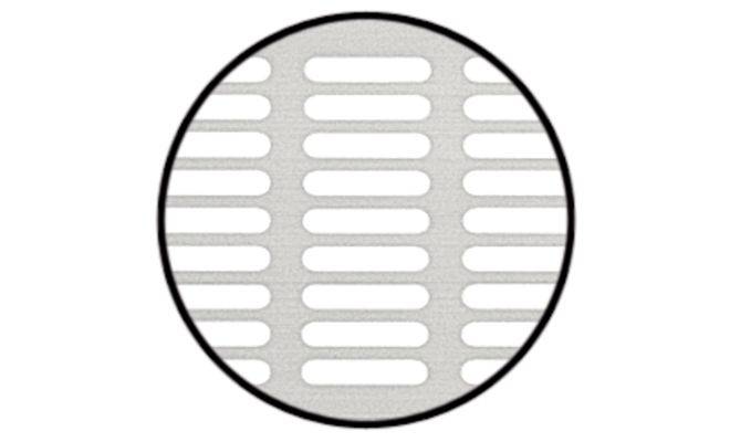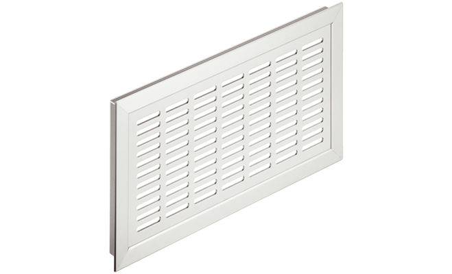 Прямокутна вентиляційна решітка з захисною кромкою, повздовжними отворами 30х5 мм або 40х7 мм; чи з круглими отворами 10 мм, виготовлена з алюмінію з анодованою поверхнею сріблястого кольору. Наступні характеристики можна обрати індивідуально: ширина решітки (140-300 мм), довжина (≤2,500 мм). Розмір вирізу = зовнішній розмір (ДхШ) - 15 мм. Монтаж решітки виконується шляхом запресовування.